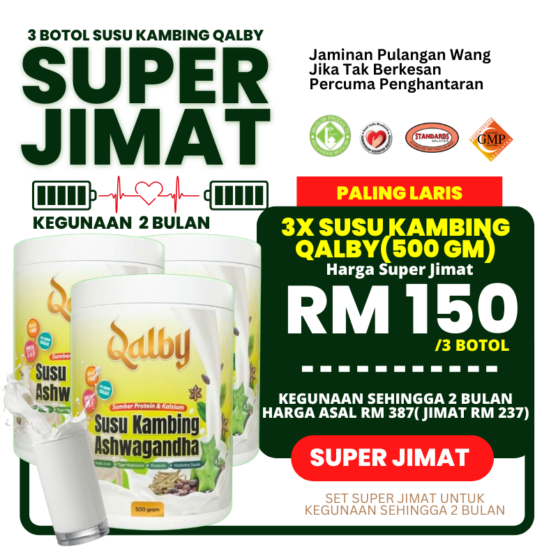 Disclaimer: Testimonials found at SUSU KAMBING QALBY and/or from Qalby.my are unverified results that have been forwarded to us by users of the product. The results may vary for each individual and are not intended to represent or guarantee that anyone will achieve the same or similar results within a specific period of time.